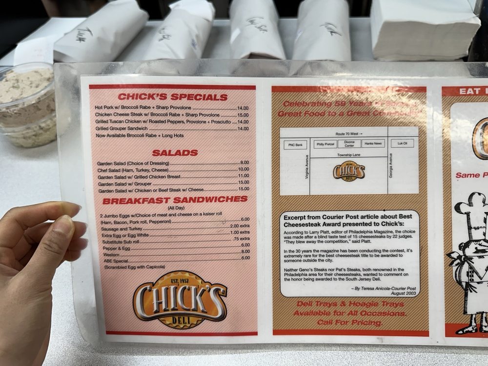 Welcome to Chick's Deli, a hidden gem nestled in Cherry Hill Township, NJ, renowned for its scrumptious delis, cheesesteaks, and sandwiches. Since 1957, Chick's has been serving up flavorful hot sandwiches that draw both locals and visitors alike.